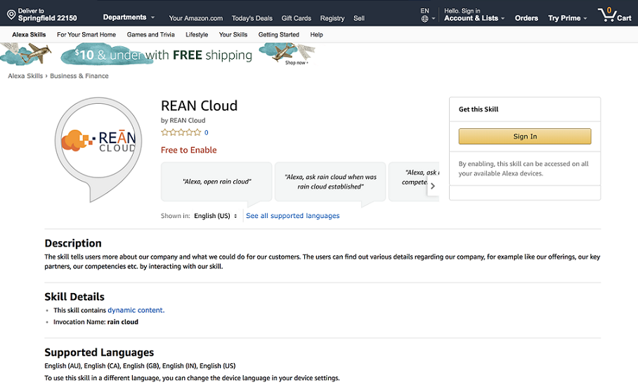 Our journey into developing Alexa skills began early last year when REAN Cloud transformed the patient and provider experience for a large, not-for-profit healthcare network in the U. S., delivering an in-room concierge system. Powered by Alexa, the interactive platform helped the healthcare network concentrate on patient care and be more efficient with hands-free data input. Our solution also provided better response rates and patient feedback through Alexa, all while maintaining compliance with HIPAA and applicable state regulations.